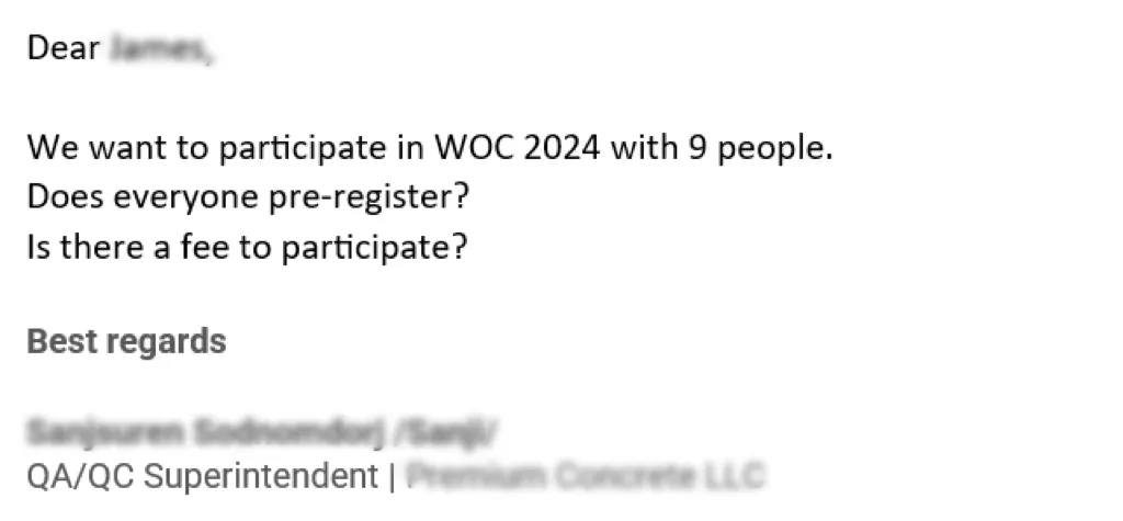 自参观预登记系统上线以来,我们收到了众多海外观众的登记信息和参观问询,来源覆盖全球多个地区。WOCA亚洲混凝土世界博览会依托强大的海外资源,为拓展海外市场的客户带来了新的商机。