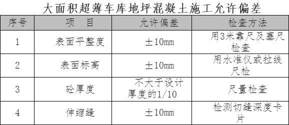 车库地坪混凝土施工质量检查与验收:表面平整度、表面标高、厚度和伸缩缝裁切深度应符合要求。