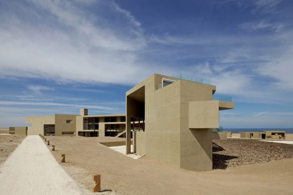 Hornitos 酒店,建筑的每个体量都是由彩色混凝土制成。