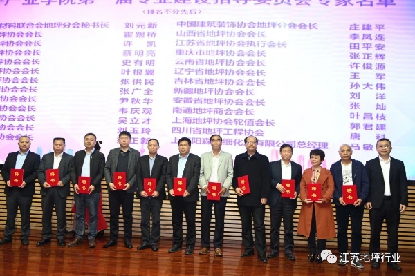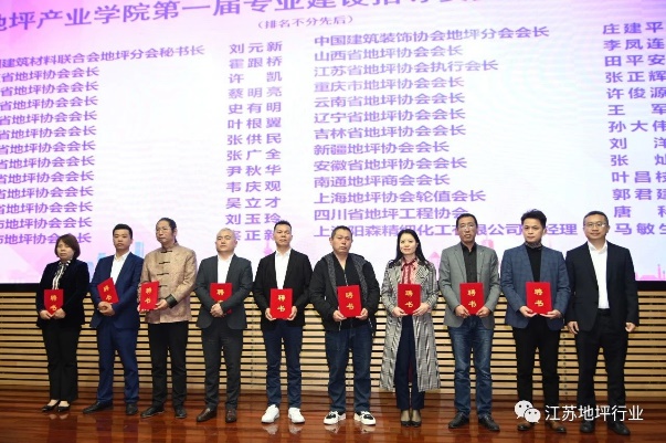 在与会人员的共同见证下,常州科教城管委会副主任蒋鹏举、住建部武进绿色建筑集聚区管委会主任贺军,共同为地坪产业学院揭牌。产业学院揭牌仪式之后成立了第一届领导机构和专业建设指导委员会,院长李雄威为指导委员会专家发放聘书。