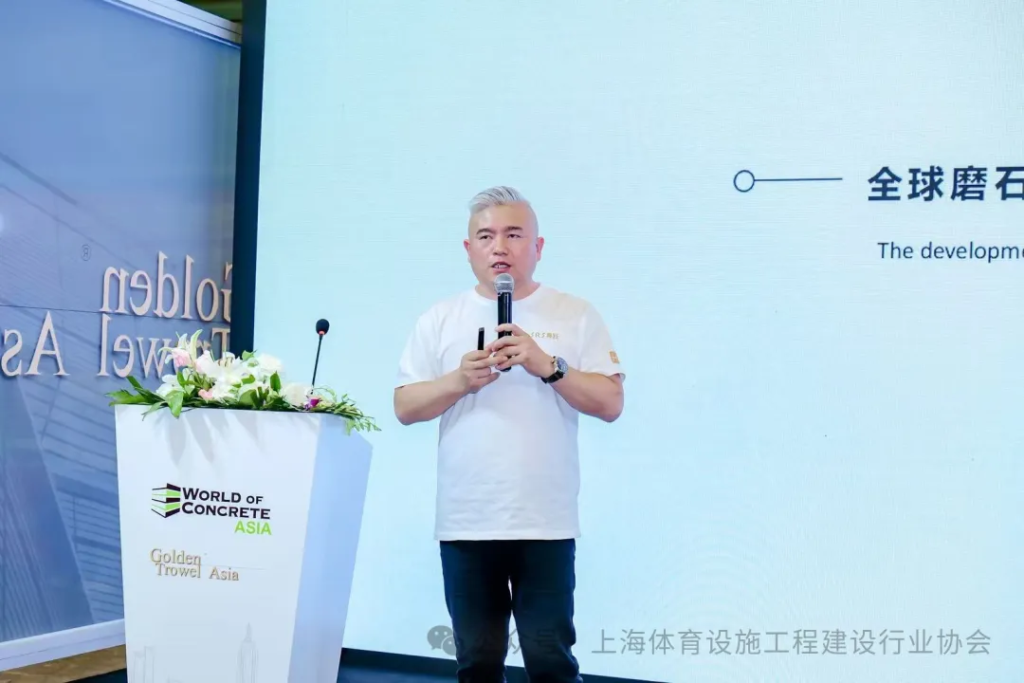 上海典跃建材科技有限公司董事长郭君建就《全球磨石地面行业的发展趋势》带来专业内容分享。他指出,随着科技的进步和市场需求的不断变化,磨石地面行业不断推出新的材料、工艺和设计方案,以满足消费者对于个性化、高品质地面装饰的需求。