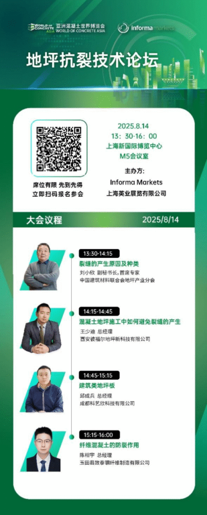 2025年8月13-15日,来WOCA亚洲混凝土世界博览会,与行业专家一起“对症下药”,打造抗裂好地坪!